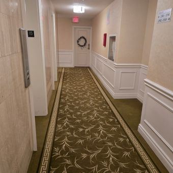 - What We Did: Commercial carpet installation, wall surface refinishing, wainscoting and millwork restoration, suite door hardware modernization, and lighting enhancements.